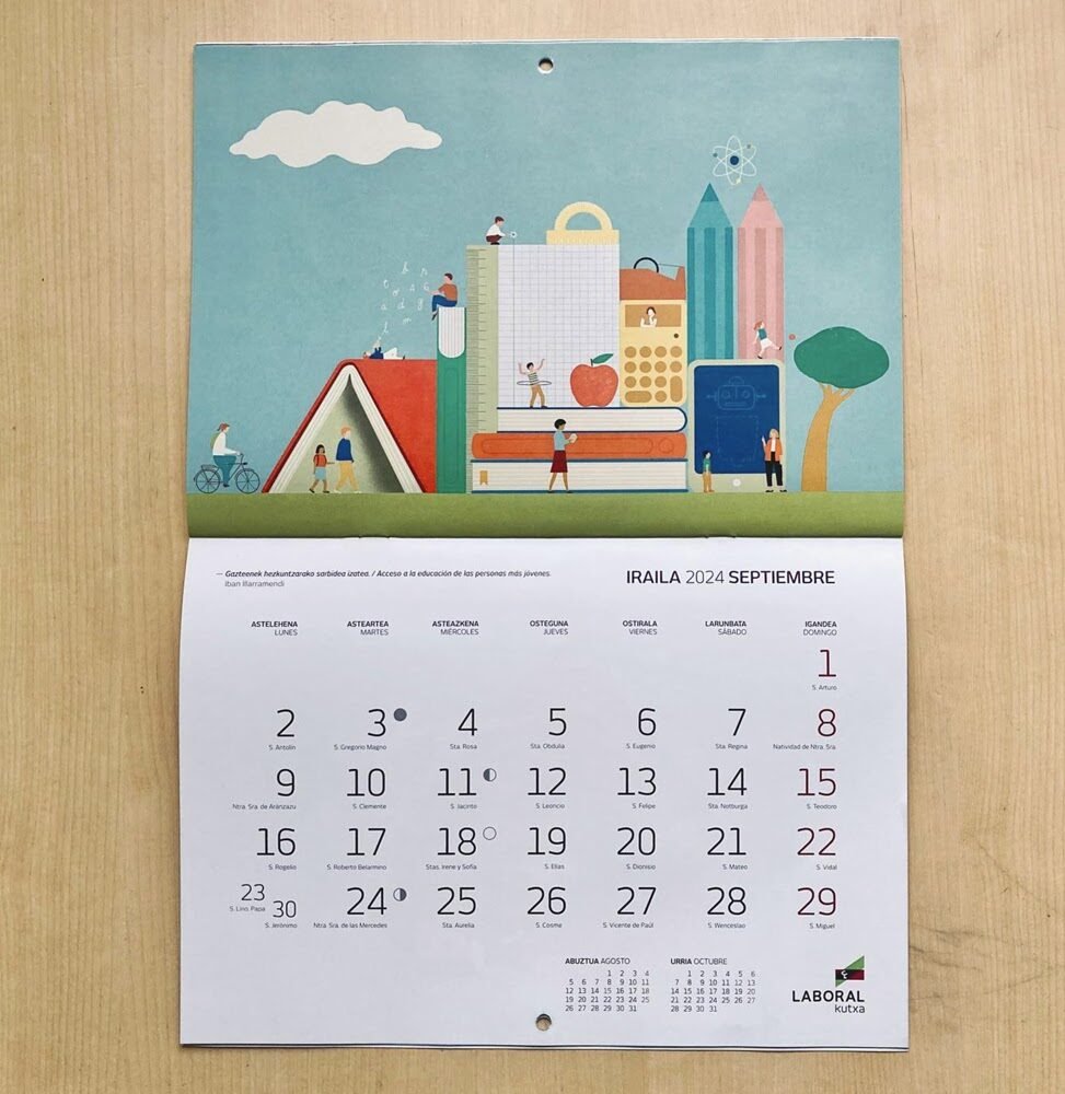 Ilustración realizada para el calendario de Laboral Kutxa 2024 encargada por la agencia Dimensión.